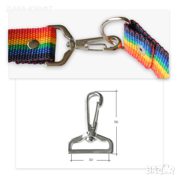 Карабинките, с различни размери при основата, са подходящи за кожени и текстилни презрамки със същата ширина. Използват се от шивачи, любители "направи си сам" и хора, занимаващи се с художествени професии. Освен като презрамки и дръжки за чанти, те са чудесен аксесоар, който придава завършен и модерен вид на различни кожени и текстилни изделия. Карабинката позволява бързо откачане на ремъка от другата част на продукта, а въртящата се основа не позволява усукването му.