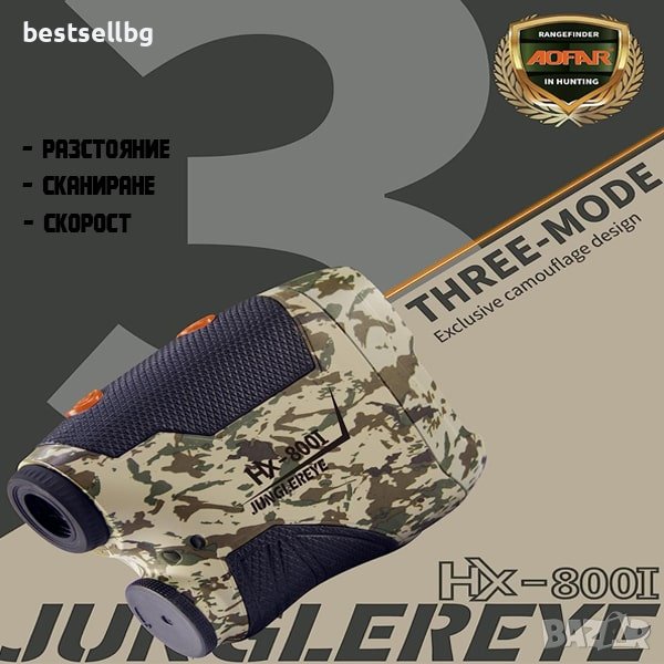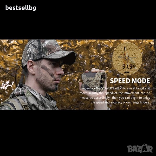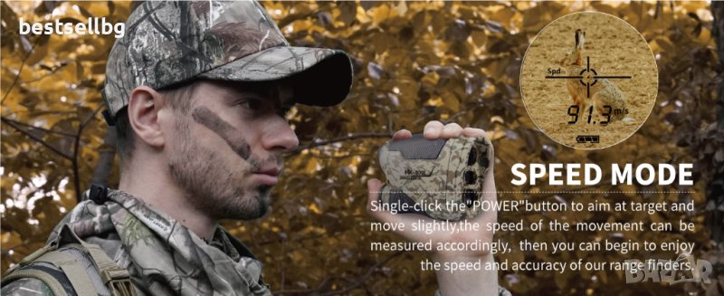 Множество Режими: Този далекомер разполага с три режима - обхват, сканиране и скорост. Това ви позволява да използвате устройството за различни приложения като лов, голф, стрелба с лък и други. Функцията за памет на режима прави използването много удобно.