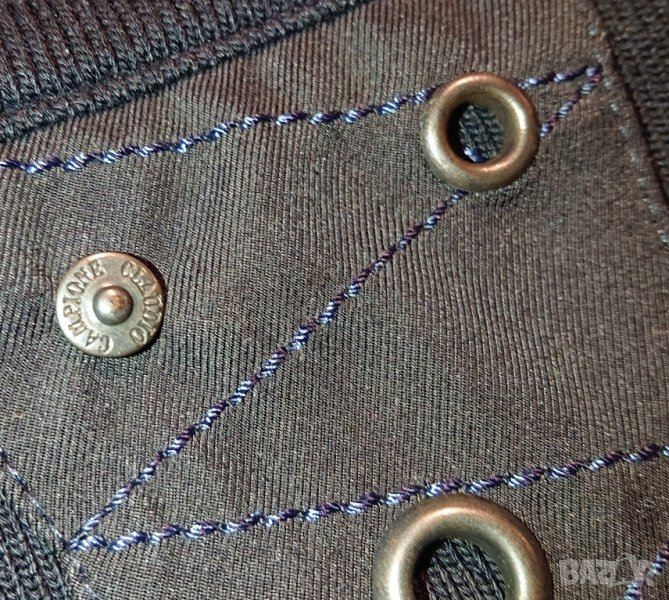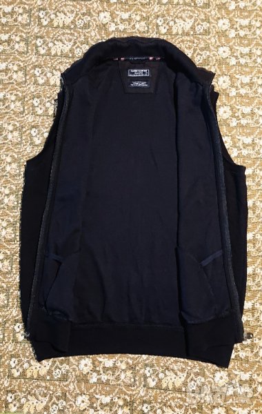 Без никакви забележки. Няма следи от употреба. Възможно е светкавицата да лъже на места за избледняло. Тъмно син цвят. Състояние неразличимо от ново. Разтеглива е - размери: Между мищниците 53 см. От рамо до долу 61 см. От рамо до рамо 43 см. Дължина на ципа 66 см. Модерна жилетка за мъже от актуалната яхтена колекция на Claudio Campion. Атрактивните детайли, като ципа по цялата дължина, елегантните гарнитури на рамото и яката и джобовете с цип, правят тъмно синята мъжка жилетка истински привлекателна. В комбинация с ежедневни дънки и панталони чинос, модерната визия е перфектна. Синята жилетка за мъже е уникална и отличителна.