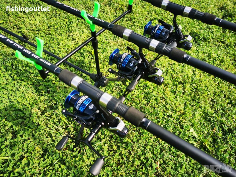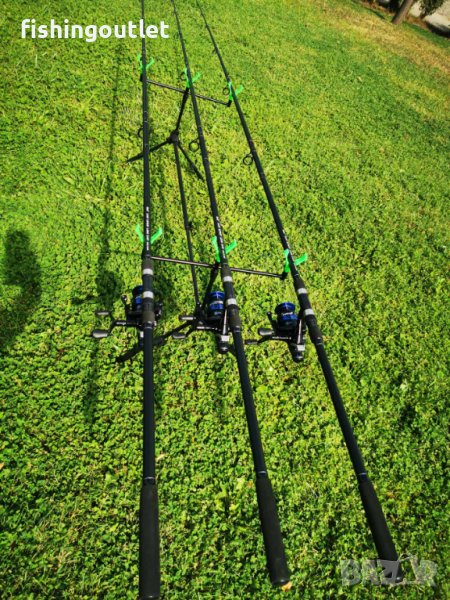Промо комплект ! 3 шарански въдици 3.60мт и 3 макари с 10 лагера и двоен аванс