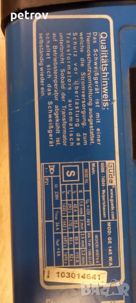 Електрожен "Güde" GE 145W монофазен, снимка 1 - Други инструменти - 42249890 Електрожен "Güde" GE 145W монофазен, снимка 2 - Други инструменти - 42249890 Електрожен "Güde" GE 145W монофазен, снимка 3 - Други инструменти - 42249890 Електрожен "Güde" GE 145W монофазен, снимка 4 - Други инструменти - 42249890 Електрожен "Güde" GE 145W монофазен, снимка 5 - Други инструменти - 42249890 Електрожен "Güde" GE 145W монофазен, снимка 6 - Други инструменти - 42249890 Електрожен "Güde" GE 145W монофазен, снимка 7 - Други инструменти - 42249890 Електрожен "Güde" GE 145W монофазен, снимка 8 - Други инструменти - 42249890 1/8