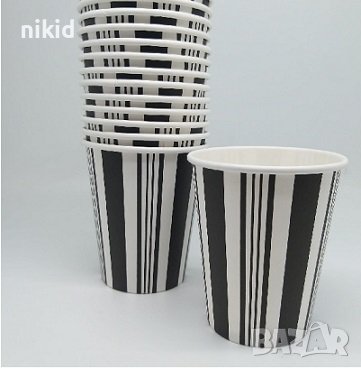 Черно Бели ленти черти рали високи 8 бр картонени чаши парти рожден ден → Обява 42251827