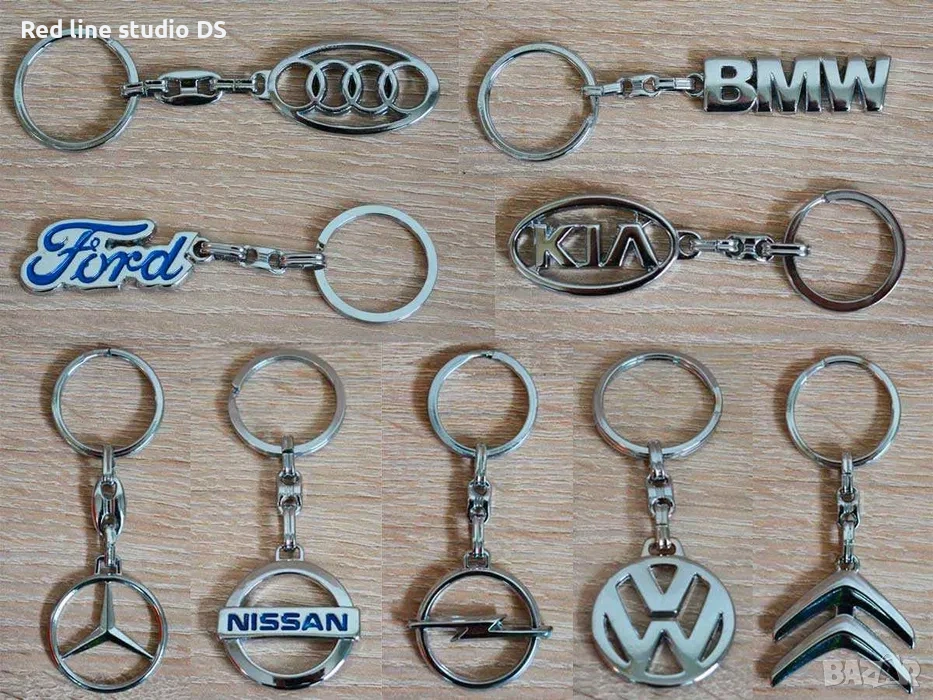 Метални хромирани ключодържатели с емблема на автомобил. Мерцедес, BMW, Тойота, Ауди, Форд, Мазда, Опел, Пежо, Рено, Фолксваген и др.
