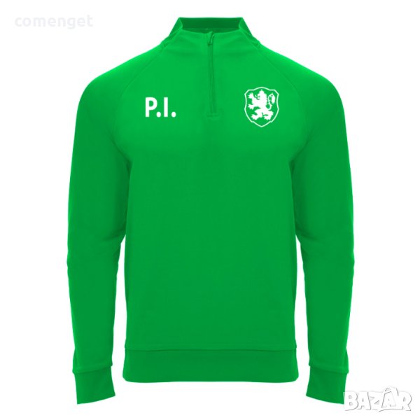 Мъжка спортна блуза BULGARIA / БЪЛГАРИЯ от гладък полиестер стояща по тялото. Възможност за добавяне на ИНИЦИАЛИ по ТВОЙ избор. Блузата е с половин цип, реглан ръкави с ластик и ластик на талията. Ципа е с протектор на брадата, а горната част на блузата с дизайнерска кройка.
