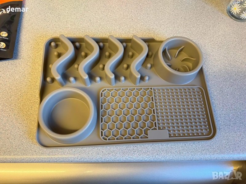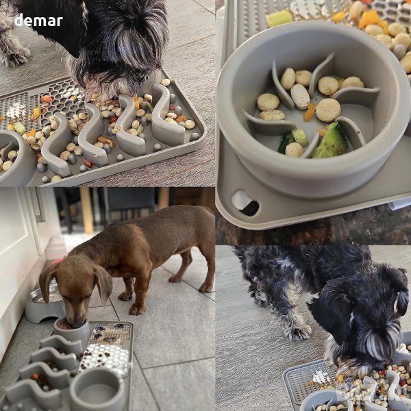 Тази подложка за хранене помага да успокоите вашия домашен любимец, като насърчава облизването, което освобождава ендорфини. Това е особено полезно по време на стресови моменти като посещения при ветеринарен лекар, време за къпане, подрязване на нокти или възстановяване от нараняване, като намалява безпокойството и разрушителното поведение. Уникалният дизайн на тази подложка за близане забавя храненето на вашия домашен любимец, удължава времето за хранене и намалява подуването, като същевременно подобрява смилаемостта. Служи като интересна алтернатива на традиционната кучешка купа за кучета и котки. С пет различни текстури, тази подложка за близане ефективно намалява скоростта на хранене на вашия домашен любимец, насърчавайки по-здравословно храносмилане. Гърбът на тази подложка за храна за домашни любимци разполага с 68 мощни вендузи, които гарантират, че остава здраво закрепена към гладка, чиста повърхност. Повдигнатите ръбове на шарката на текстурата предотвратяват разпространението на храната, поддържайки вашата баня, душ или плот чисти. Тази подложка за близане със силно засмукване може да се фиксира стабилно върху гладка стена, осигурявайки облекчение на безпокойството и забавление за вашия домашен любимец. Създадена да намали безпокойството и разрушителното поведение по време на къпане или подстригване, тази постелка за близане поддържа вашите домашни любимци спокойни и разсеяни. Те с удоволствие ще ближат храна от постелката, правейки стресови ситуации като къпане, подстригване и подрязване на ноктите по-лесно управляеми.