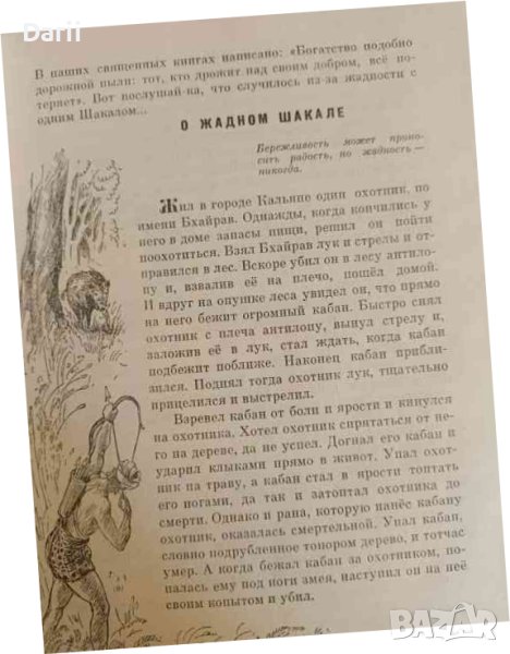 Сквозь тысячелетия и века дошли до наших дней легенды и басни, сказки и притчи Индии - от первобытных, переданных от прадедов к правнукам, до эпических поэм великих поэтов средневековья. Это неисчерпаемая сокровищница народной мудрости. Горсть из этой сокровищницы - "Хитопадеша", сборник занимательных историй, рассказанных будто бы животными животным и преподанных в виде остроумных поучений мудрецом Вишну Шармой избалованным сыновьям раджи. Сборник "Хитопадеша" был написан на санскрите (язык древней и средневековой Индии) и составлен на основе ещё более древнего и знаменитого сборника "Панчатантра" между VI и XIV веками н.э. По некоторым рукописям составление "Хитопадеши" приписывается некоему Нараяне. На протяжении долгих веков "Хитопадеша" пользуется огромной популярностью среди многих народов. Она давно уже переведена почти на все языки Востока и Запада, в том числе и на русский язык. Предлагаемый читателю перевод "Хитопадеши" не претендует на совершенную идентичность с оригиналом. В основу этого перевода легло издание "Хитопадеши" для детей на языке хинди, вышедшее в делийском издательстве "Раджпатрал энд Санз"; в этом издании стихотворные нравоучительные сентенции переданы прозой, а некоторая часть их опущена вовсе.