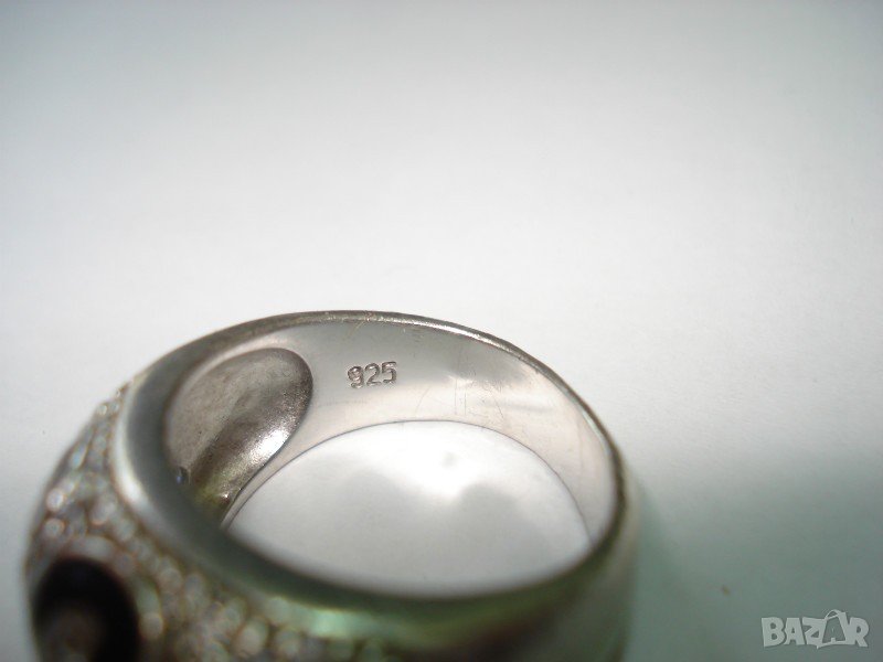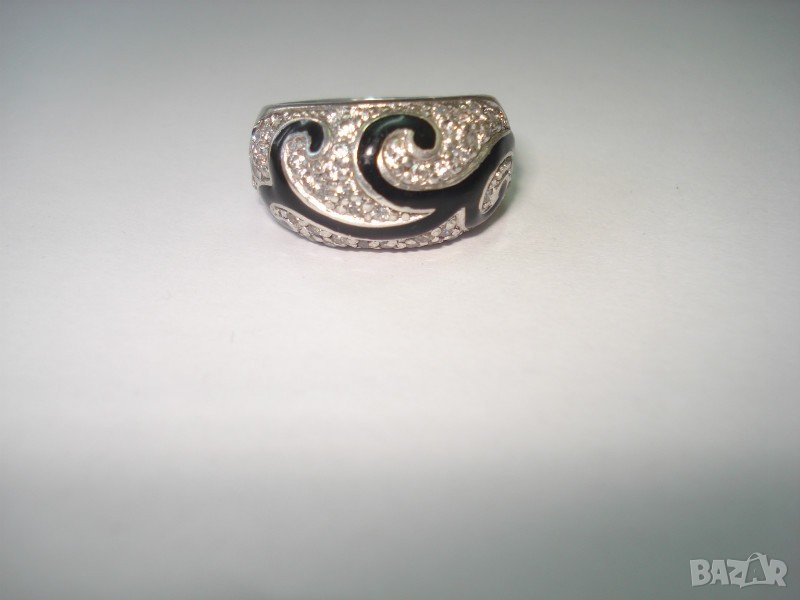 Сребърен пръстен с циркони и емайл и диаметър на халката 18 мм.