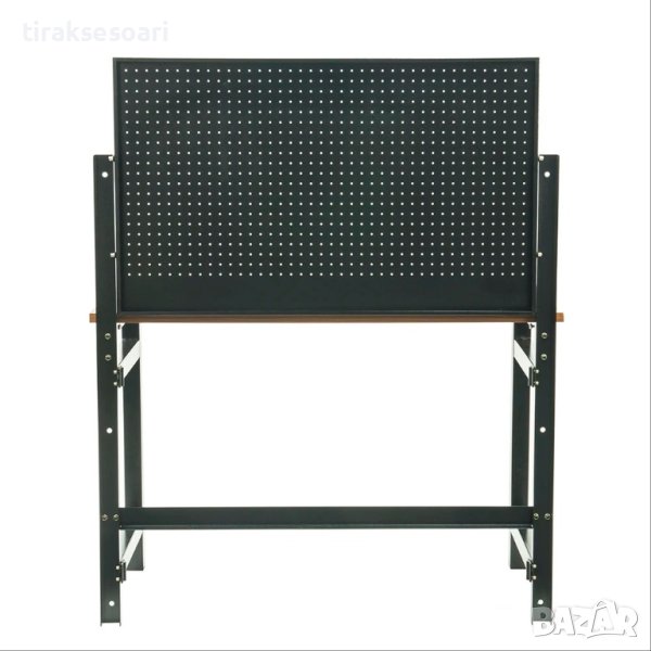 Перфектната работна маса, когато нямате много място. Благодарение на сгъваемата функция, тя може да се сгъне до минимален размер, за да спести място. Сгъваемата работна маса е с размери на плота 1200х600х25 мм и има товароносимост 150 кг. Размери на стената 1005х630 мм товароносимост 10кг . Мултифункционалната работна маса е подходяща за гаражи и работилници и може да се сгъне до минимален размер, за да спести място. Стената позволява окачване на инструменти.