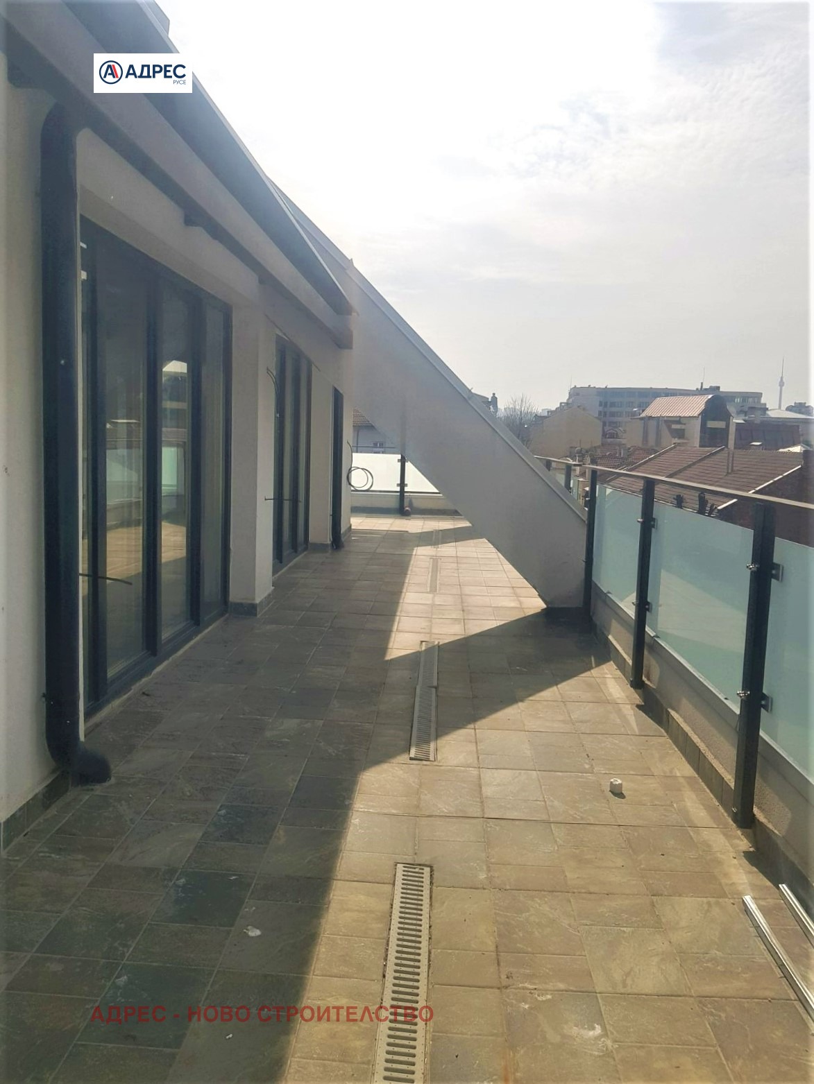 Предлагаме Ви атрактивен имот в непосредствена близост до ул. Александровска , в нова изключително луксозна и модерна сграда, с контролиран достъп и асансьор. Имотът е с площ 288 кв. м разпределен на две нива. На първо ниво е разположен просторен дневен тракт, с кухненска и трапезарна част, спалня, баня със санитарен възел, дрешник. Панорамна тераса с френски прозорци, на която има възможност да се обособят кът за отдих и барбекю зона, обхваща целия дневен тракт, втора самостоятелна южна тераса на спалнята. Посредством вътрешно стълбище, в което естествената светлина влиза чрез изграден оберлихт се стига до второ ниво, където са разположени спалня със самостоятелна баня и санитарен възел, сервизно помещение, просторен дрешник, възможности да се оформят различни кътове и зони, кабинет и др. Жилището е със започнат ремонт, съобразен с изготвен дизайнерски проект. Изградената ВиК инсталация, включително предвижда монтиране на инсталация за омекотяване на вода. Ел. инсталация, включваща модерно осветление и всички съвременни удобства за едно жилище от ново поколение. Изцяло изградена система за подово отопление с управление, което може да преминава и на ТЕЦ, и на ГАЗ. Климатична система по технологичен проект, с поставени външни тела и налични за монтаж вътрешни таванни климатици от най-висок клас. Покривните прозорци на второ ниво са най- високо качество Velux, с монтирани щори и дистанционно управление, които правят помещенията светли и неповторимо уютни. Допълнително може да бъде закупено ПАРКОМЯСТО, с гаражна врата за два автомобила на цена 32 000 евро.