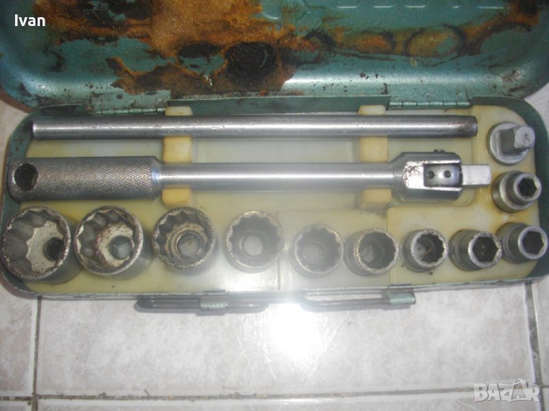 ОПИСАНИЕ на руска/СССР гедория инструменталиум 10-30 мм със силов върток. Цена 129 лв. Старо руско соц производство, което се отличава с висока ефективност и здравина, липсваща в съвремието. Ползван пълен комплект оот 15 части, без липси, със запазен външен вид и оригиналнаата си метална кутия с метална плъзгаща се копчалка. Размери на кутията - 320 х 120 х 60 мм. Марка на гедорията инструменталиум НК.З. Включва адаптер каре за камъни 1 бр., 10 бр. различни вложки торсове оригиинални от 10 мм до 30 мм, силов върток на 2 части ,твърда пластмасова трудночупливаа вложка и металната кутия. Главата квадрат на силови върток е тип чупеща - върти се на 360 градуса. Тгло на гедорията с кутията - 3,5 кг.