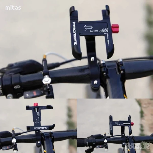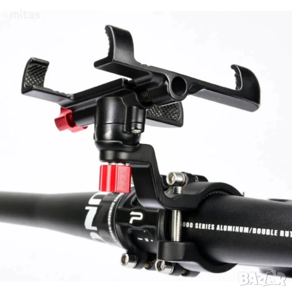 Универсална стойка за телефон, Алуминиева, Регулируема 360°, Велосипед