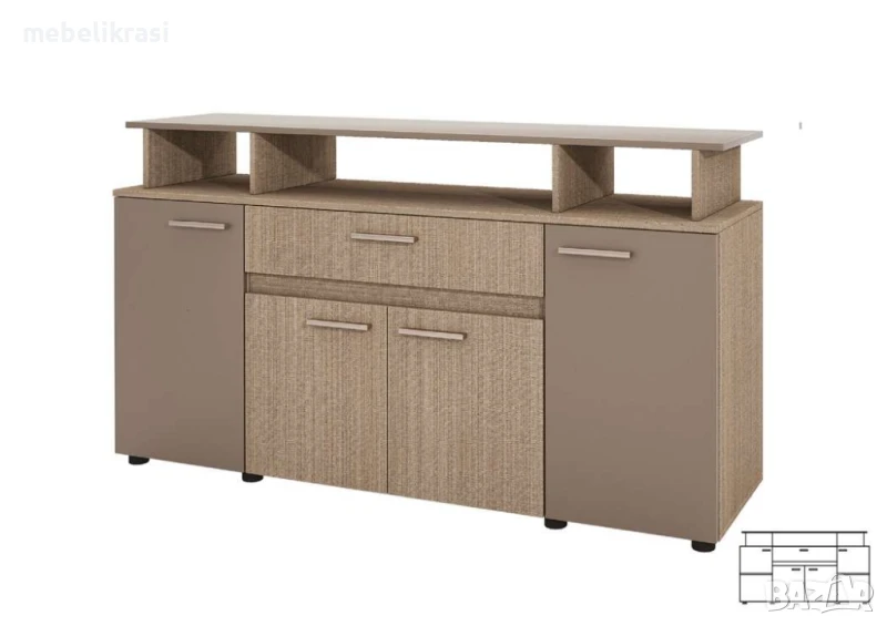 Скрин "Сити 3056" разполага с четири вратички с плавно затваряне и едно чекмедже в средата.
