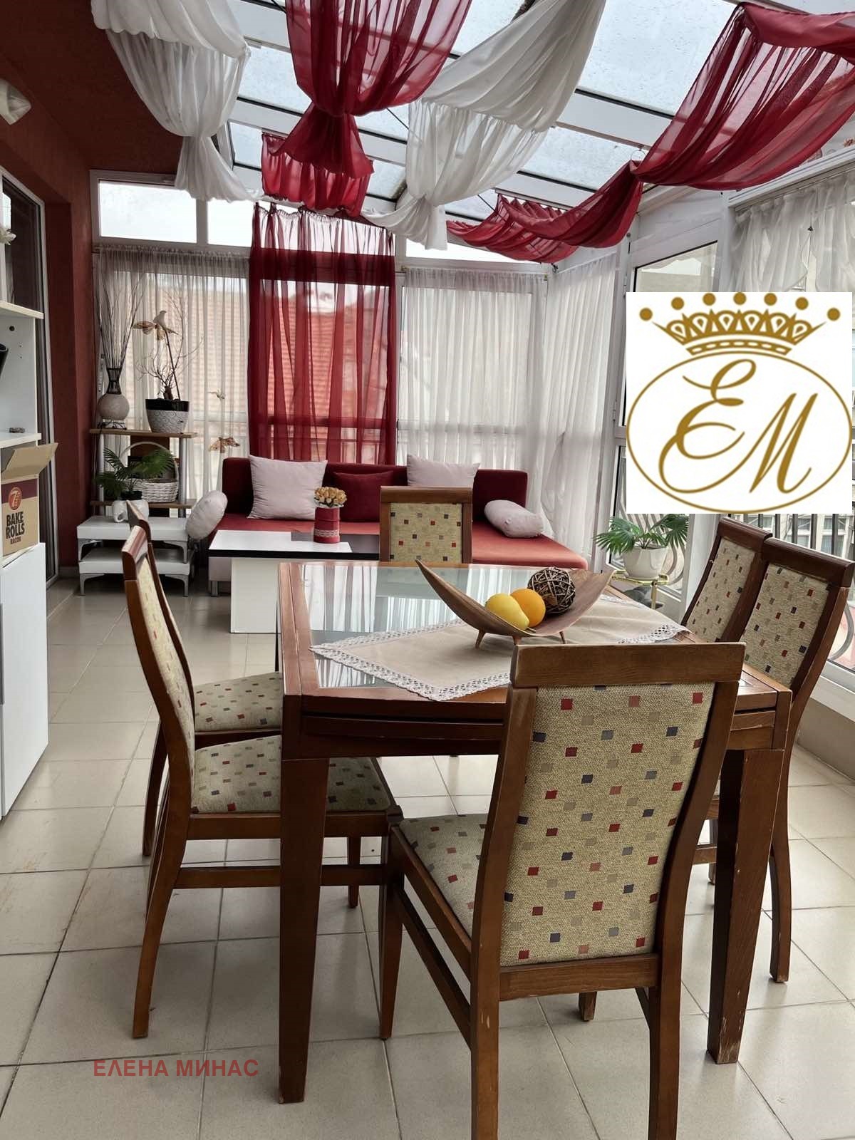 Имоти 'ЕЛЕНА МИНАС' предлага за продажба ЛУКСОЗЕН ТУХЛЕН ОБЗАВЕДЕН МЕЗОНЕТ НС на ТИХА и СПОКОЙНА улица в ЦЕНТРАЛНАТА част на града в района на площад КРИСТАЛ. МОДЕРНО, СТИЛНО жилище на ДВЕ нива свързани с ЕЛЕГАНТНО стълбище, което се състои от ПРОСТОРЕН дневен тракт /кухня, трапезария и хол/, две спални, дрешник, ДВЕ ОТЛИЧНИ бани с тоалет и ЧУДЕСНА тераса за всички сезони. Отоплението е с КЛИМАТИЦИ, с изложение ЮГ/ЗАПАД. Към имота има подземен ГАРАЖ за ДВА автомобила на отделна цена - 40000 лв. Намира се в ПОДДЪРЖАН вход с контролиран достъп и НАЛИЧЕН асансьор.