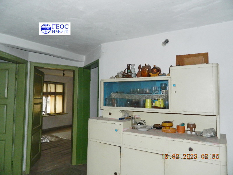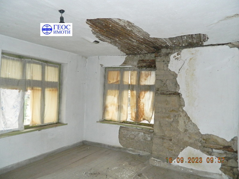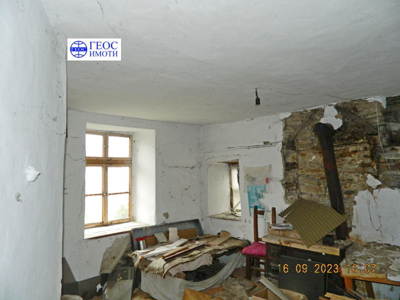Продава се каменна къща /югозападен близнак/ със застроена площ 73 кв.м. и РЗП 182 кв.м., на три етажа в центъра на селото /непосредствено под площада на селото/. На първи /сутеренен/етаж са разположени избено помещение и коридор, на втори етаж три стаи, а на трети - салон и три стаи. Външна тоалетна. Всеки етаж е със самостоятелен вход, но има изградено и вътрешно стълбище. Къщата се нуждае от основен ремонт. В цената влиза и застроен и незастроен поземлен имот с площ 317 кв.м.