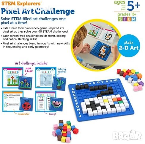 Този комплект съчетава творчески предизвикателства и STEM дейности, за да интегрира изкуството в обучението по наука, технологии, инженерство и математика.