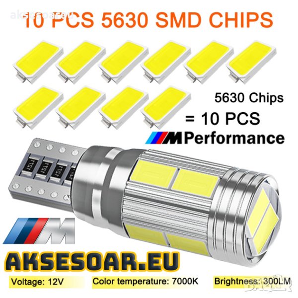 LED тип: 5630 10SMD T10 W5W Canbus светлина