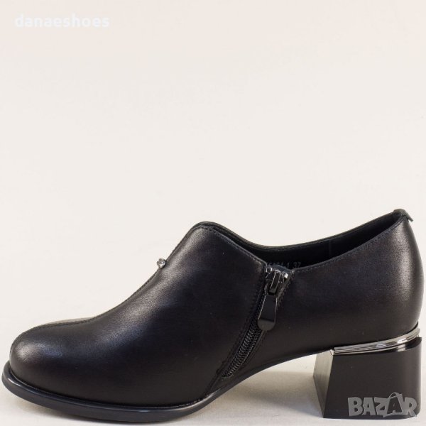 Дамски обувки на среден ток. Модела е с цип, подходящ за тесен до средно широк крак. Стоят елегантно, прибрано по крака и са подходящи за носене с панталони, поли и рокли. Номерация 36-41. Налични и в бежово.