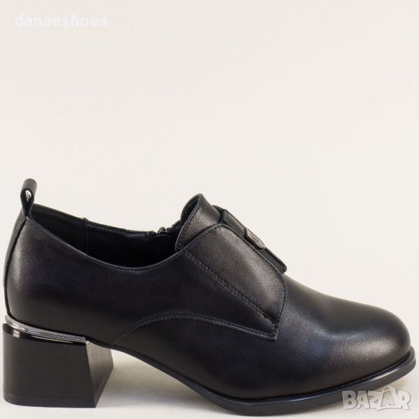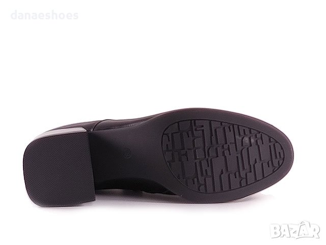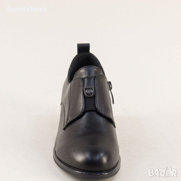 Дамски обувки на среден ток. Модела е с цип, отгоре на езика има ластик. Подходящ за средно широк крак. Стоят елегантно, прибрано по крака и са подходящи за носене с панталони, поли и рокли. Номерация 36-41. Налични и в бежово.