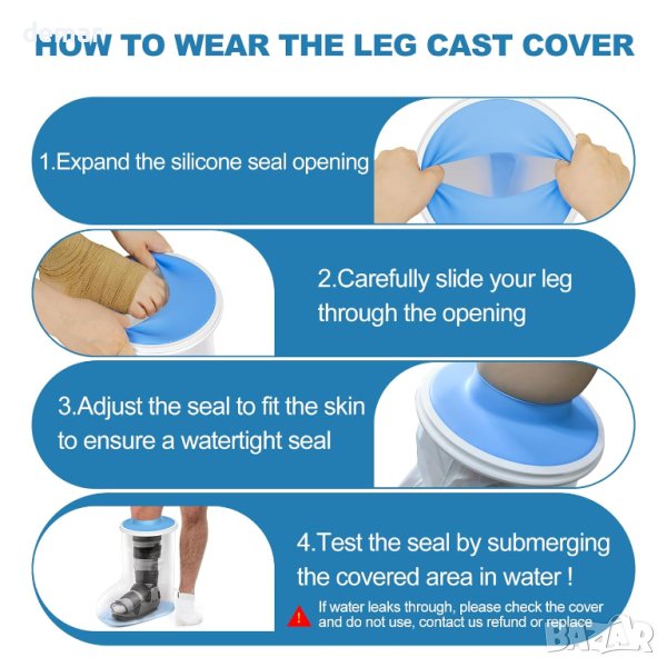 Този конкретен модел е XL-Extra Wide, което означава, че осигурява допълнителна ширина за побиране на по-големи крака или отливки. Уверете се, че сте избрали подходящия размер, за да осигурите плътно и водоустойчиво прилягане. Калъфът е предназначена да създаде водоустойчиво уплътнение около крака, предотвратявайки навлизането на вода и компрометирането на отливката, бинтовете или превръзките. Тази защита позволява на лица с гипс или наранявания да поддържат лична хигиена без риск от проблеми, свързани с влагата. Гипсовото покритие YUNCHI е за многократна употреба, което означава, че можете да го използвате многократно през целия период на възстановяване, което го прави рентабилно решение. Калъфът е изработен от издръжливи, висококачествени материали, които са водоустойчиви и удобни за носене. Проектиран е да издържи многократна употреба без разкъсване или изтичане. Калъфът е оборудван със сигурно уплътнение, което го държи на място по време на употреба, осигурявайки ефективна защита срещу вода. Това лято покритие е подходящо за използване както по време на душ, така и по време на вана, което позволява на хората да се наслаждават на редовни процедури за къпане без притеснение.