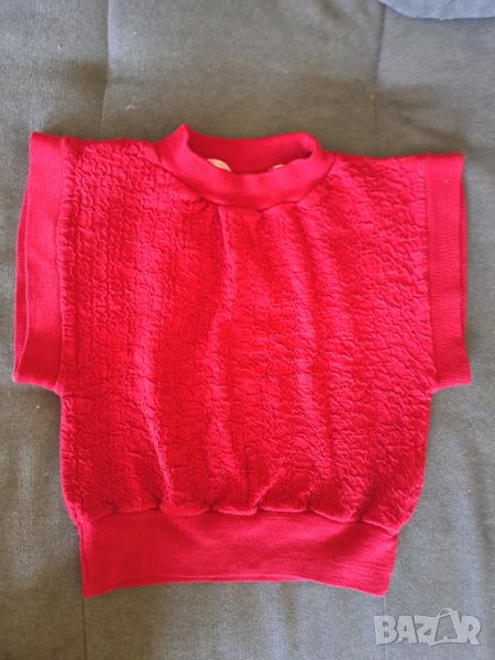 Детска блуза елек без ръкав, за 3-4 и 4-5 годишно дете, според фигурата, ширина 34 см отпред /или обиколка 68 см/, дължина 36 см. Материя двойна плътна отпред намачкана. Отговарям на съобщения тук, изпращам с куриер с отстъпка, преглед и тест, или лично предаване в София.