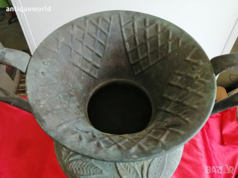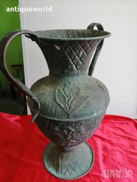 Огромен Много Красив Масивен Старинен Меден Съд , Амфора , Ваза , Кашпа с Флорални Мотиви. 19 Век. С Естествената си непочистена хубава Патина!