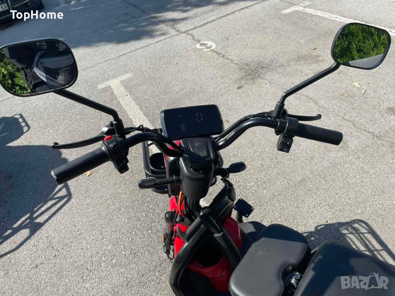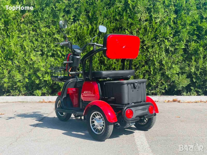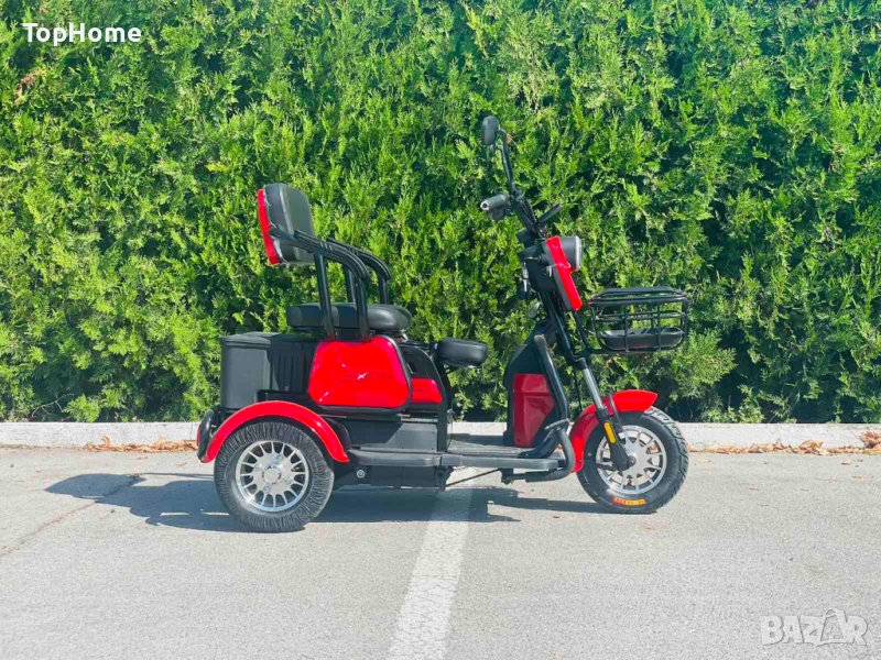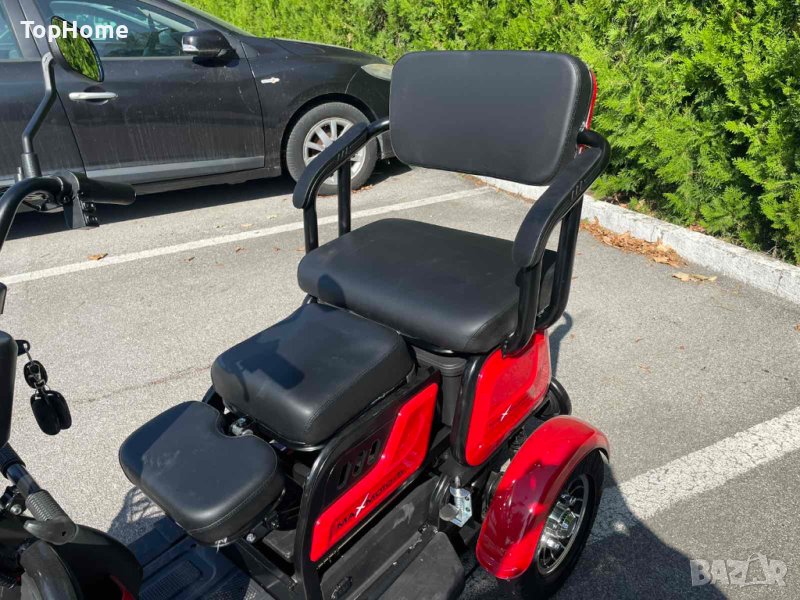 Уникална триместна триколка X1 - без аналог на пазара. Триколката е с дигитално табло, три нива на скоростта, стопове, мигачи и габарити, LED фар. Предна и задна ръчни спирачки. Крачна спирачка. Голям кош за багаж. Триколката е с вградена втора седалка за допълнителен пасажер, като самата седалка се движи във височина, което създава удобство за нисък или висок човек.