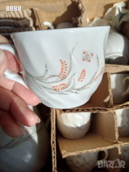 Нов порцеланов сервиз за кафе+4бр.чаши за чаши..100мл.кафе,200мл.чай.