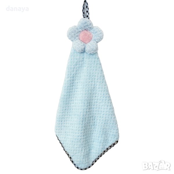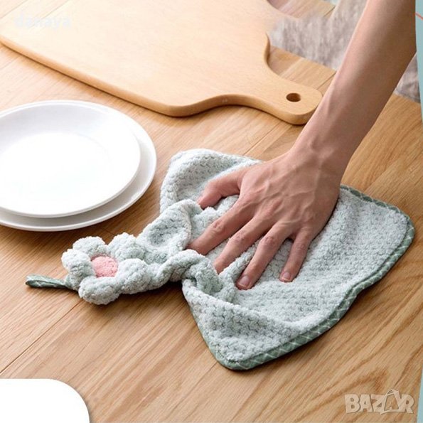 Микрофибърна кърпа за ръце с декорация цвете в горната си част. С тази кърпа може да правиш много неща – с нея може да полираш чаши, посуда, смесителят в банята или кухнята. С тази кърпа можеш да почистиш разляти течности, да подсушаваш, да обираш нечистотии и прах. Не оставя никакви мъхчета по повърхността, попива много добре! Естествено може да я използваш и просто като кухненска кърпа за ръце. Може да я използваш навсякъде, дори за почистване на автомобила. Мултифункционална кърпа, която е необходима за всеки дом!