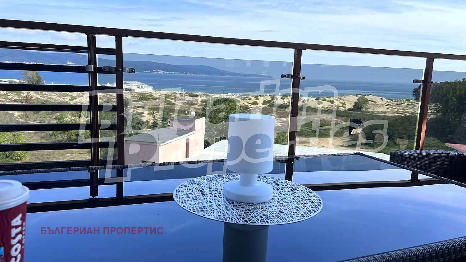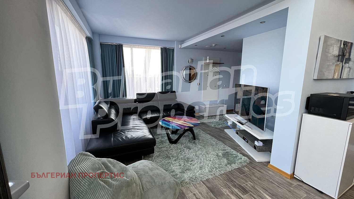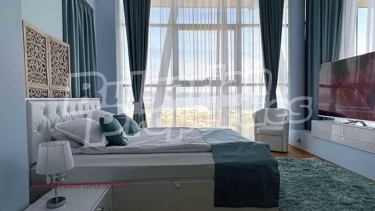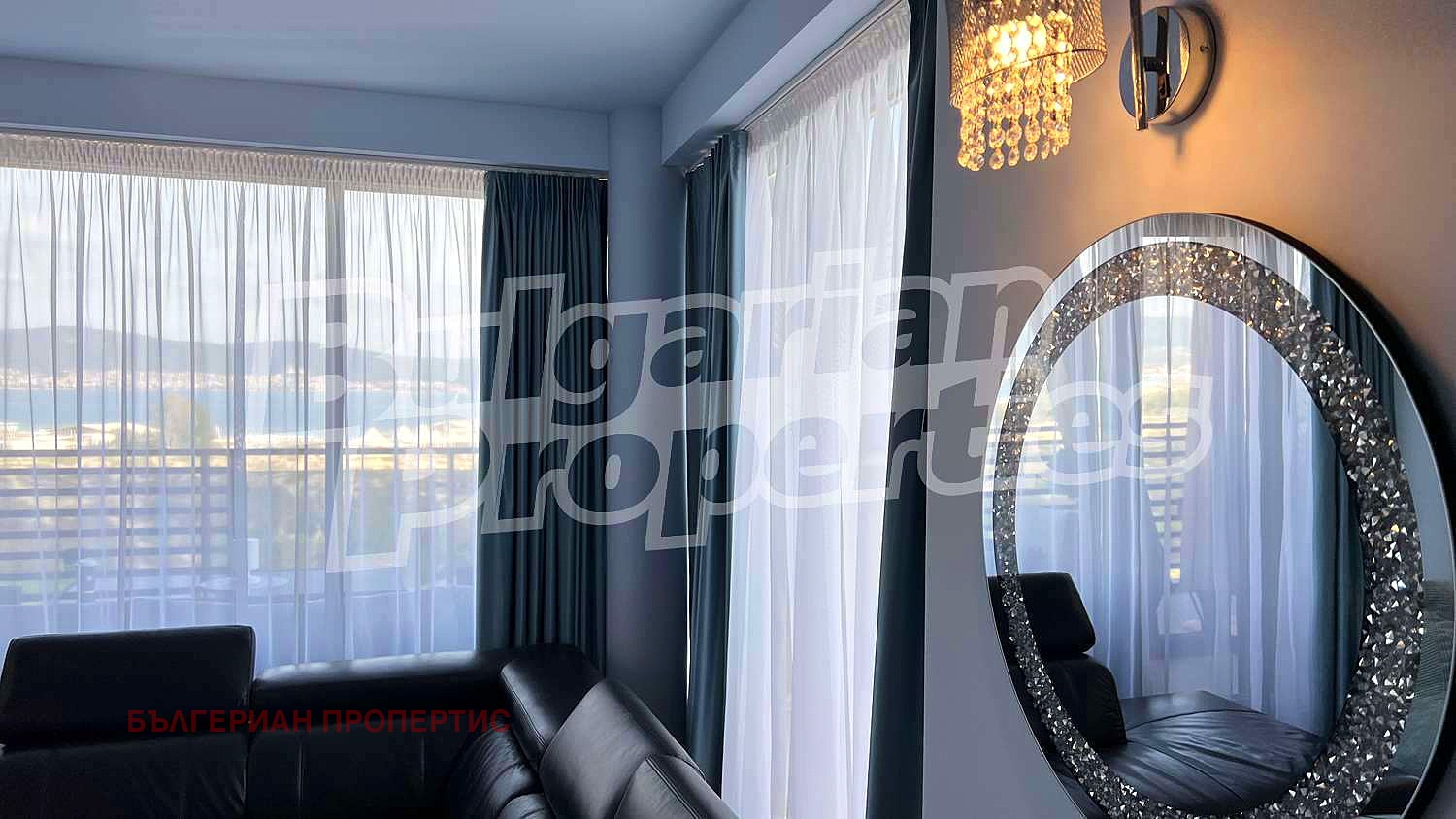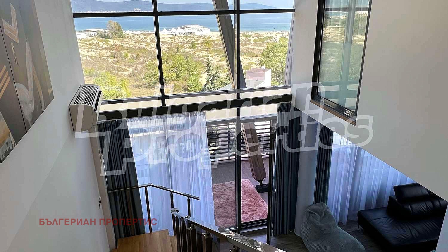 Жилището е ситуирано на последния 7-ми етаж и е ориентирано към плажа и разполага с огромна тераса с уникална гледка към морето и плажа.
