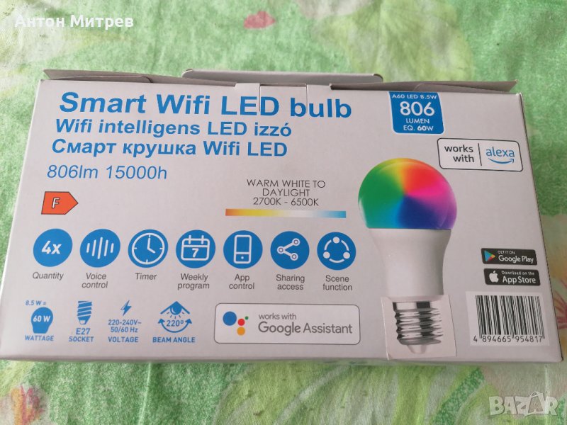 Продавам 4 броя чисто нови Smart крушки Е27, снимка 1 - Лед осветление - 42283273 Продавам 4 броя чисто нови Smart крушки Е27, снимка 2 - Лед осветление - 42283273 Продавам 4 броя чисто нови Smart крушки Е27, снимка 3 - Лед осветление - 42283273 Продавам 4 броя чисто нови Smart крушки Е27, снимка 4 - Лед осветление - 42283273 Продавам 4 броя чисто нови Smart крушки Е27, снимка 5 - Лед осветление - 42283273 Продавам 4 броя чисто нови Smart крушки Е27, снимка 6 - Лед осветление - 42283273 1/6