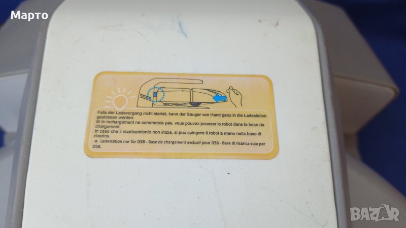 Моля да прочетете внимателно обясненията по обявата по-долу и тогава да задавате въпросите си!!! Щом обявата е активна, значи е налична и смело може да заръчвате директно ако си харесате нещо. Робота е напълно работещ, като всички системи са наред. Батерията е за смяна, защото тръгва, чисти съвсем малко и се връща зарядната база. Дистанционното не е налично. Ползвал съм го без него. Просто го запусках, чистеше всичко и се връща за зареждане и така следващия път. Причината за продажба е, че си взех нов, а този иска батерия. Изпращам по Еконт през сайта на Базар бг. Ползвате 10% отстъпка от куриерската услуга. Имате и опция преглед и тест преди да се плати. 192ма. Забележка: По Спиди НЕ ИЗПРАЩАМ!!! ПИШЕТЕ ТУК СЪОБЩЕНИЕ ИЛИ ОСТАВЕТЕ ТЕЛЕФОНЕН НОМЕР И АЗ ЩЕ ВИ ЗВЪННА ПРИ ПЪРВА ВЪЗМОЖНОСТ.