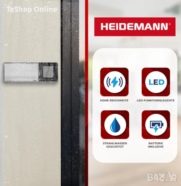 Безжичен звънец радиогонг Heidemann FUNKGONG-Set HX Square
