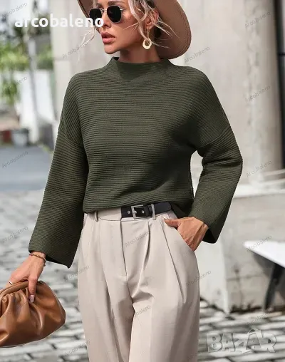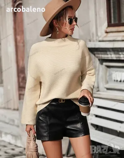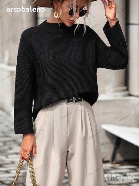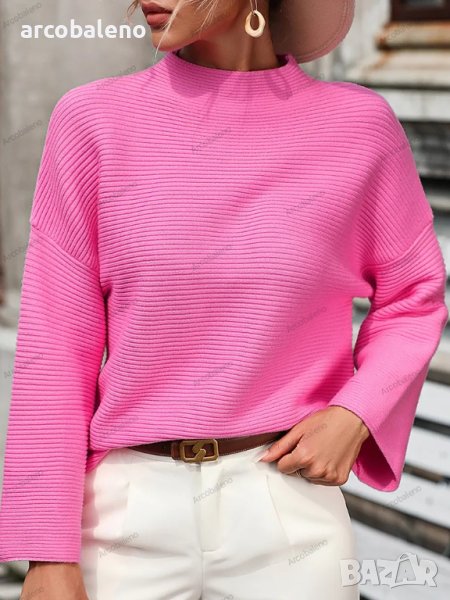 Свободен дамски едноцветен пуловер, 5цвята