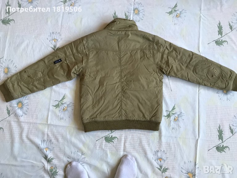 Детско зимно яке за момче, без качулка. Има по-тънка вата и е подходящо за късна есен, Много е запазено, без забележки. Цвят тъмно бежово. Размери : дължина от яката до края на якето -50 см; ширина на раменете -35 см; гръдна обиколка -86 см; дължина на ръкава-49 см