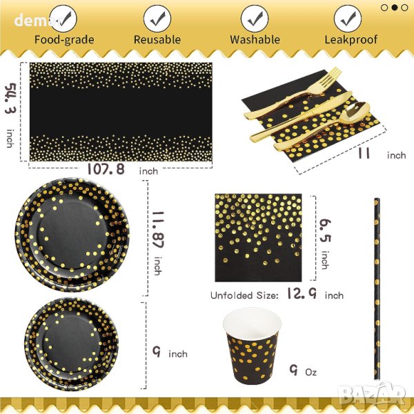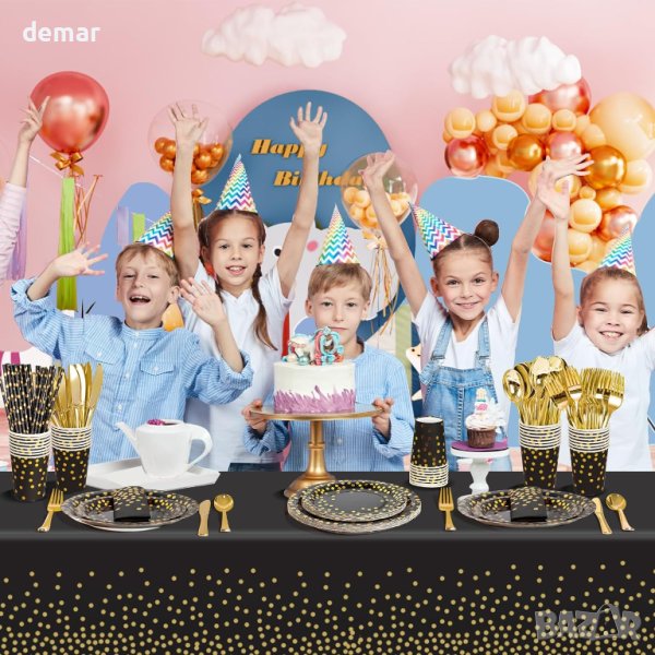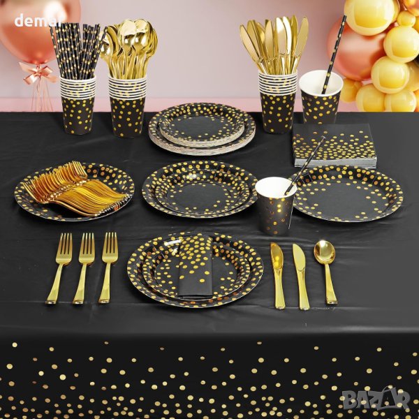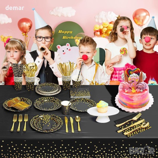 комплект сервизи за рожден ден AIPartywar от 226 части, украсен с позлатен