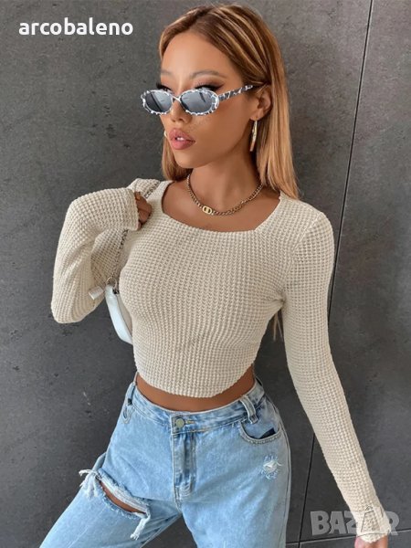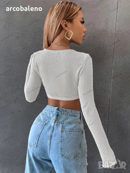 Дамска къса прилепнала секси блуза Walv Fang с дълъг ръкав, 2цвята