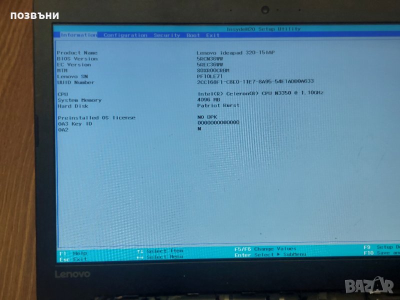 Продава се на части. Работещо дъно с процесор Celeron N3350. Клавиатурата има не работещи бутони. Капака на матрицата е пукнат. Батерията издържа 1-2 часа без проблеми.