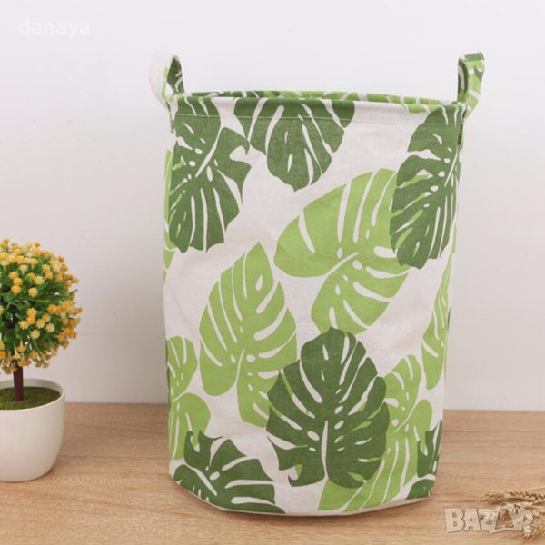 Сгъваем кош за пране или играчки в красив дизайн на зелени листа.