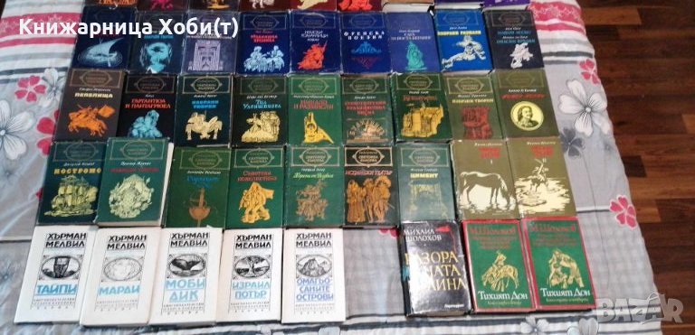 Договаряна на Световна Класика при пакети над 10 книги . Около 60 книги с обложки в много добро или отлично състояние . Повечето са били опаковани във фолио за да не се състаряват или замърсяват . Всички книги идват от семейни библиотеки . Заглавията се виждат много добре от снимките , но има и пуснат списък , както и е възможна допълнителна информация и снимки за всяка книга . . Желанието ми е да останат на по-големи групи макар и при нови собственици .