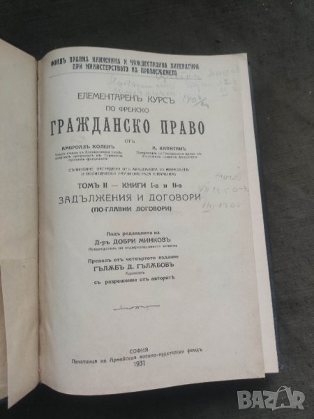 1.Том 2 - книга 1- и 2 Задължения и договори( стъкмена съобразно програмата за втора година)-1929 - 540 страници
