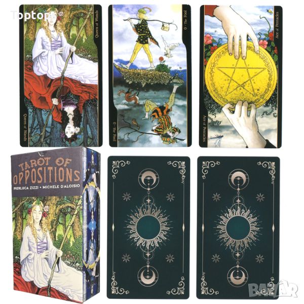 * Tarot of Oppositions, в превод на български "Таро на противоположностите" е уникална по своята структура колода - на всяка карта е изобразена дуалността на значенията. Едновременно виждаме и правата и обърнатата илюстрация. Позитивното и негативното, светлото и тъмното, приемащо и отдаващо, ин и ян са фактор и в ежедневието ни и в значенията на арканите. Изключително интересно е да се работи с картите - и да искаш не можеш да не видиш как Глупакът танцува сам със себе си, Отшелникът се взира в своето алтер его и Върховната жрица премерва мъдростта си със своята двойница.