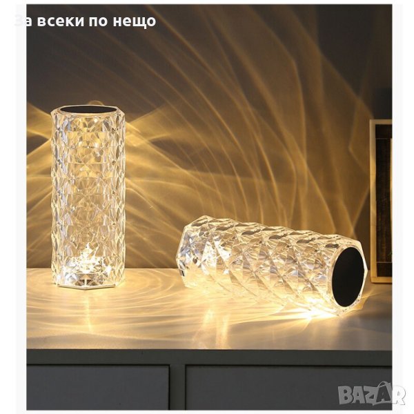 RGB LED настолна лампа, със сензорен димер, 3 степени на интензитет, акрилен кристал, с дистанционно управление