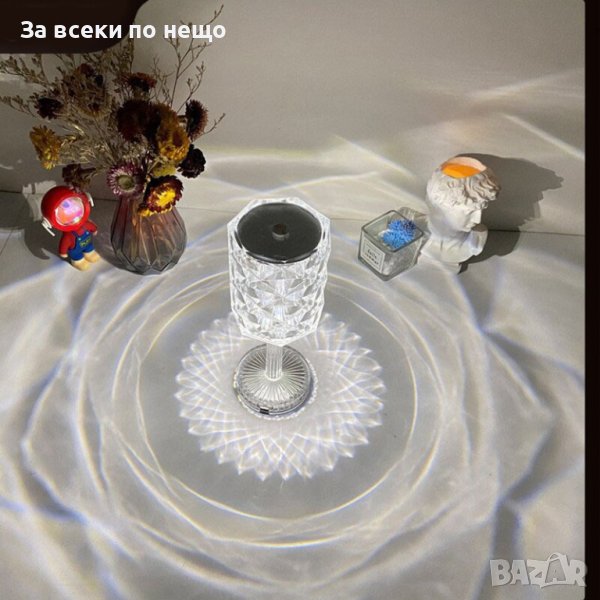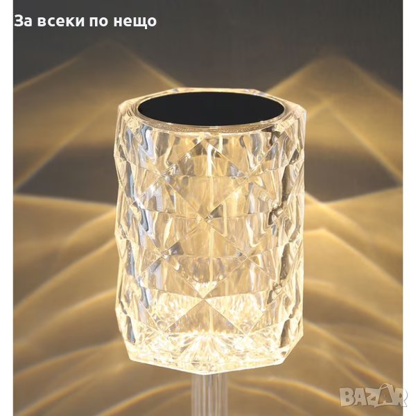 Настолна лампа, RGB LED, със сензорен димер, 3 нива на интензитет, акрилен кристал, презареждаема с