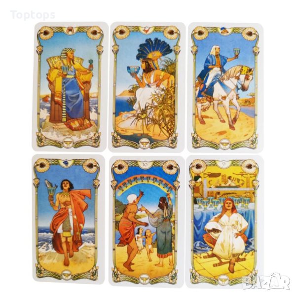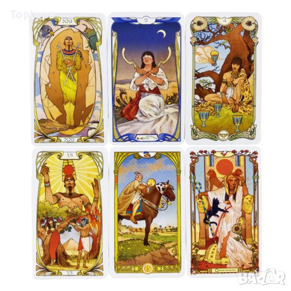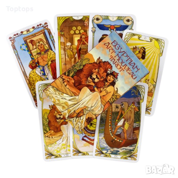 - 78 таро карти - Egyprtian Art Nouveau Tarot. Размерът им е 10,5см х 6,3см, колодата е от LoScarabeo.