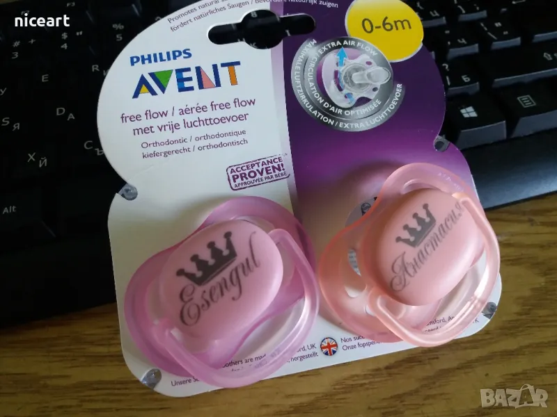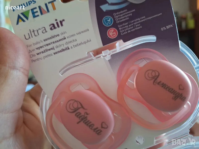 Биберон Авент с име на бебето → Обява 42294115