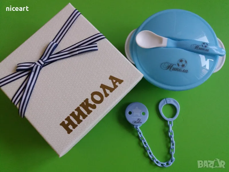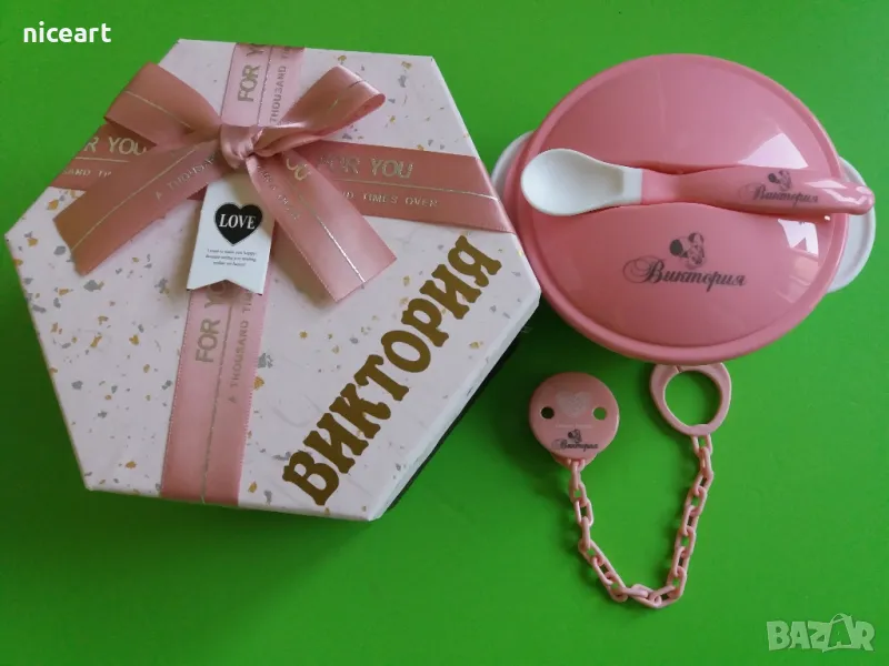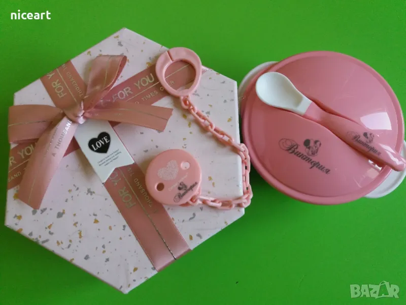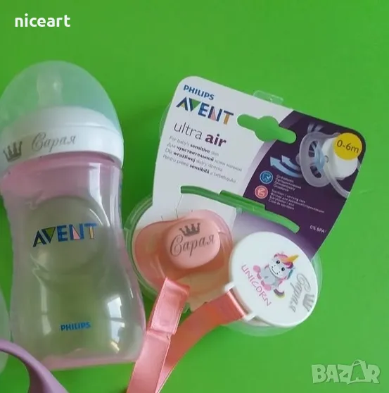 При нас може да попръчате пресонален уникален подарък-биберон-залъгалка Авент с име на вашето бебе както и други персонализирани артикули