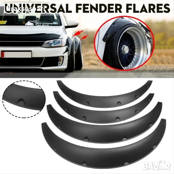 За да монтирате разширителите ще пробиете дупки в калниците си. Този комплект разширители е универсален, тоест не е за конкретна марка и модел автомобил. При монтажа е възможно да се наложи да бъдат леко подрязани, или нагряти с пистолет за горещ въздух, за да се получи перфектната форма.