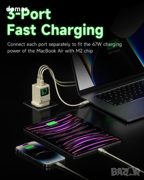 SHARGE USB C зарядно устройство, Retro 67 3-портово, 67W
