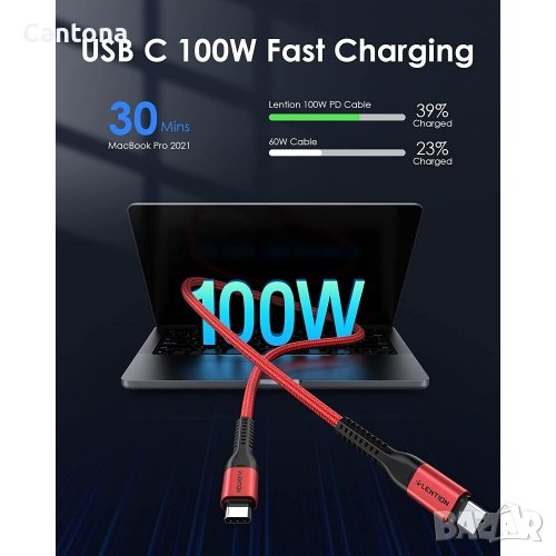 - Кабел Lention USB C към USB C, съвместим с MacBook Pro 13/15/16 2021/2019/2018/2017, MacBook Air 2021-2018, iPad Pro (3-то поколение), Surface Pro 7/Book 2 /Go , Chromebook, Samsung Galaxy S21/S20/S10. /S9/S 8/Plus/Note10/9/8, Google Pixel, Nexus, OnePlus и други USB-C устройства