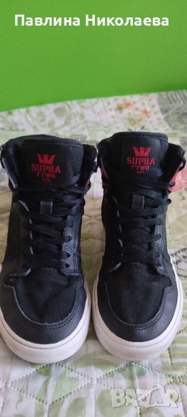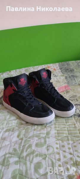 Оригинални кецове Supra изработени от висококачествени материали -естествена кожа и текстил. Страхотна комбинация на цветове. Изключително удобни, стабилни и комфортни. Обувките са носени от детето ми 4-5 пъти. Изпрани и готови за употреба. Без забележки, в отлично състояние. Размер 33,5, стелка измерена от мен 21 см. Цена 43 лева.